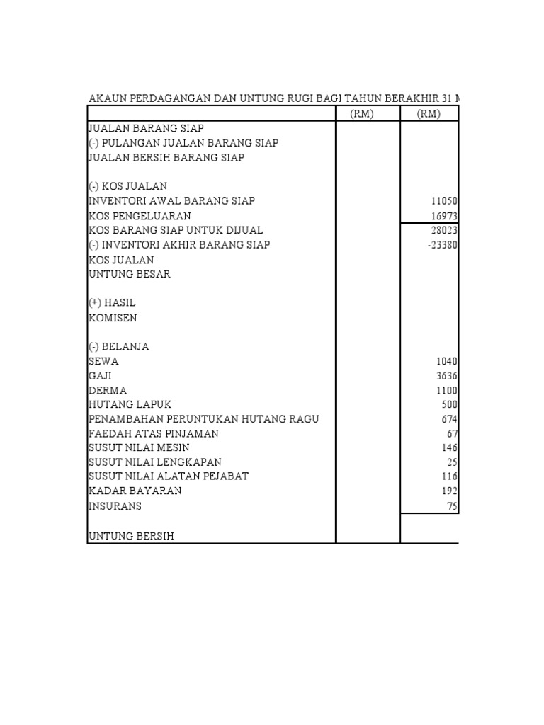 Format Akaun Perdangangan Untung Rugi Kunci Kira Kira Pdf